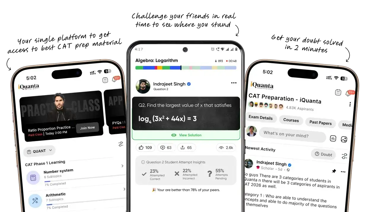Trusted for 9+ Years with record-breaking results of 1800+ CAT 99%ilers, iQuanta's CAT online coaching gives you live classes, mocks, doubt solving and mentorship in one structured program.