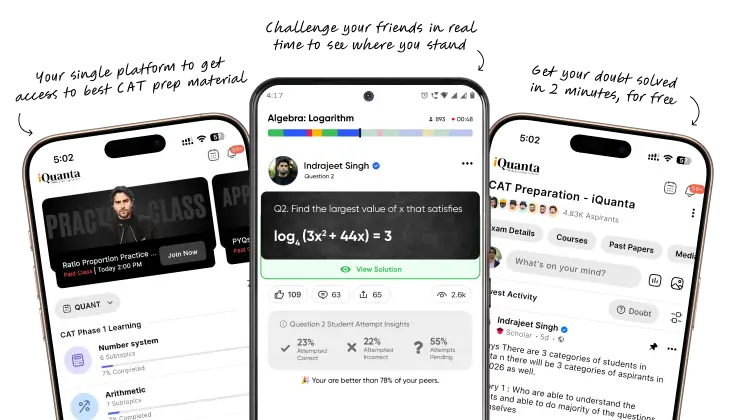 So understanding these basic factors, CAT online coaching works better although CAT offline coaching is also not a bad option if candidates are having sufficient time after completing their own work schedules. Online coaching for the CAT exam comes with several advantages like attending live+recorded sessions from anywhere at any time, affordable prices for a wide range of courses, saving travelling time, expert online mentorship sessions and more. To help you with all the important points of CAT preparation, iQuanta emerges as one of the best CAT online coaching platforms in India which provides dual pedagogy approach (Conceptual + Application), 24*7 doubt solving support, a large CAT preparation community for your help, attend sessions of CAT expert mentors with full support from the officials.