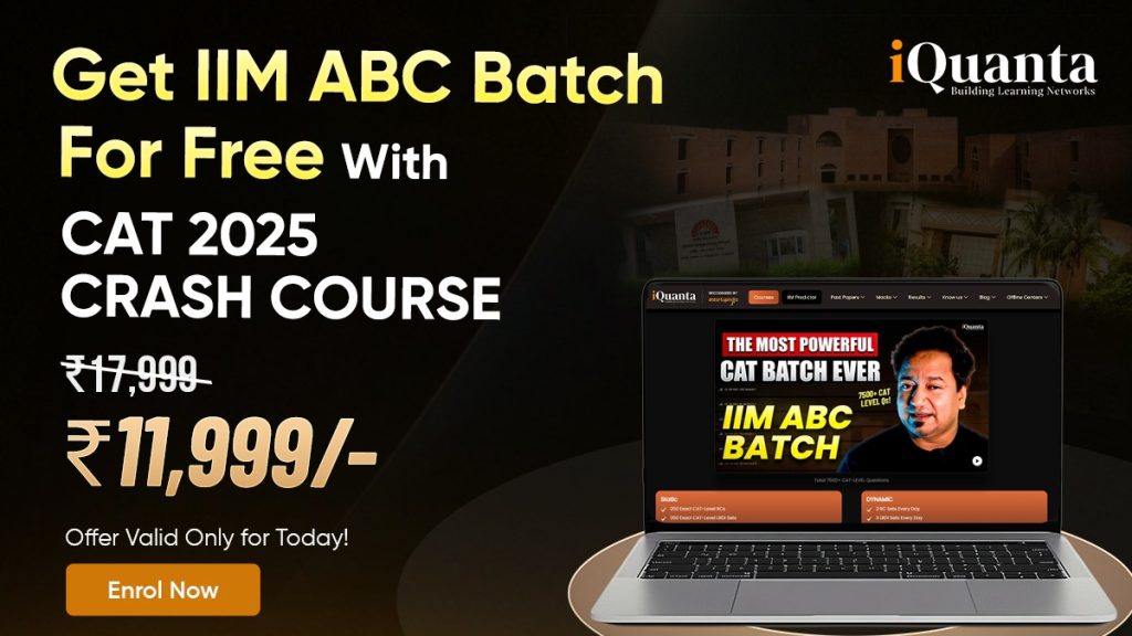 CAT 2025 is just 52 days away! For now, your preparation must be in full swing, and you must be consistent with revision and practice. Now you should practice CAT-level questions from the right resource. Amongst the most relevant resources is the IIM ABC batch that is recommended by most of the CAT Toppers. It has 7500+ CAT-level questions, and guess what? The IIM ABC batch is now free for you. To boost your preparation to its highest peak, you must register for iQuanta’s CAT Crash Course and with this, you get 7500+ CAT level questions from Quantitative Aptitude, Verbal Ability and Reading Comprehension, Data Interpretation and Logical Reasoning for free.