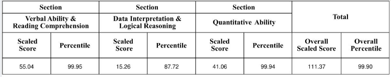 Getting such an impressive result in CAT 2025 is a perfect combination of consistent efforts, dedication, and hardwork. The overall percentile scored is 99.90 with a scaled score of 111.37. Now, let’s talk about the sectional percentile, where he scored 99.95 in Verbal Ability & Reading Comprehension, 87.72 percentile in Data Interpretation & Logical Reasoning and 99.94 percentile in Quantitative Ability. The detailed result is mentioned of a CAT topper is mentioned below.