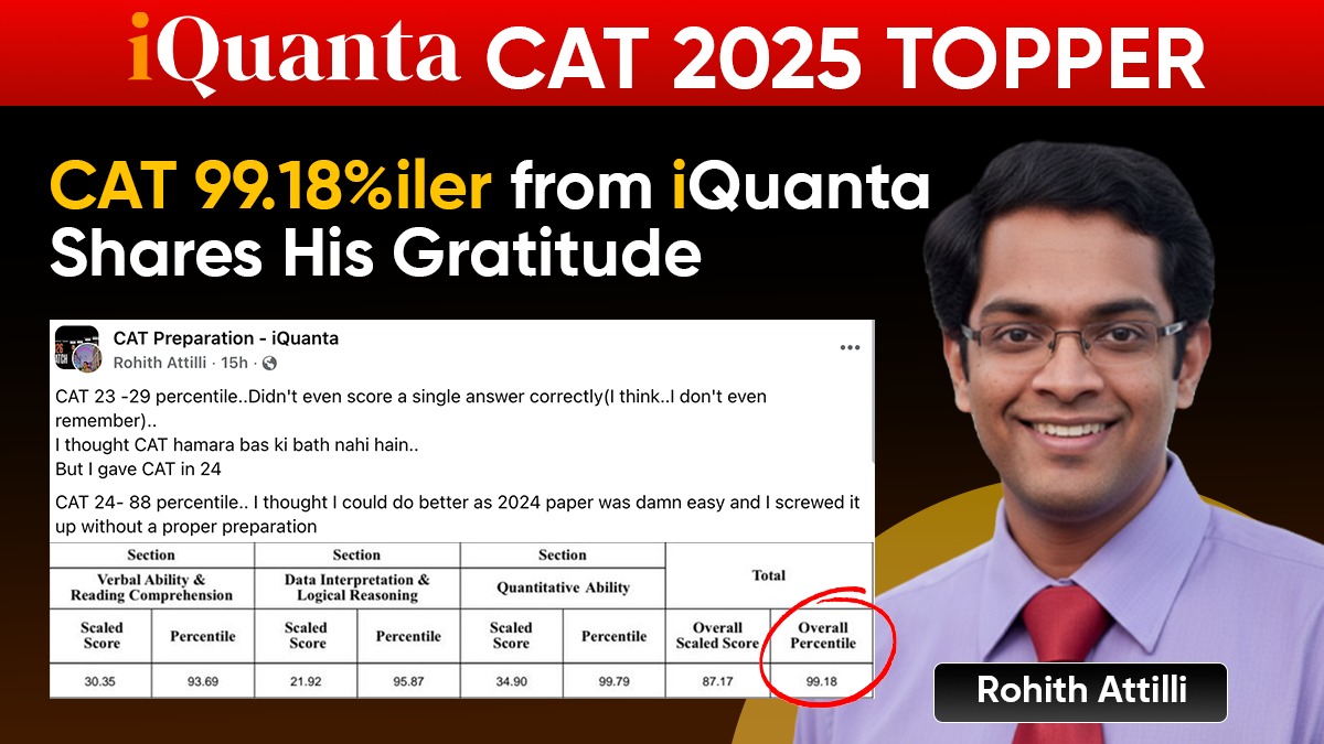 This blog covers the success story of a CAT topper Rohith Attilli. He is an iQuanta student who secured 99.18 percentile in CAT 2025. Let’s cover his success story in a detailed manner.