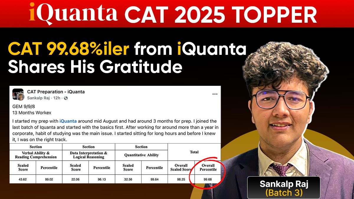 This blog covers the success story of a CAT topper “Sankalp Raj” who secure an amazing percentile 99.68 in CAT 2025 and a iQuanta student. Cover the major challenges faced by the topper along with “How iQuanta helped him in CAT preparation?”.