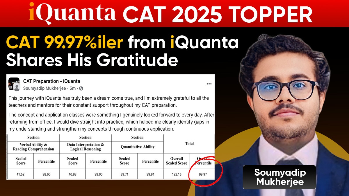 CAT 2025 Topper Soumyadip Mukherjee Scored 99.97%ile – Detailed Journey of an iQuanta Student