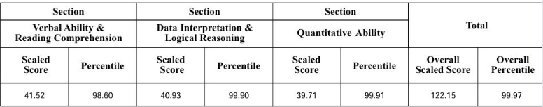 Talking in a detailed manner, CAT topper Soumyadip Mukherjee scored 98.60 in Verbal Ability & Reading Comprehension, 99.90 in Data Interpretation & Logical Reasoning and 99.91 percentile in the Quantitative Ability. The overall percentile scored by the topper is 99.97. Check the scorecard of the CAT topper mentioned below.