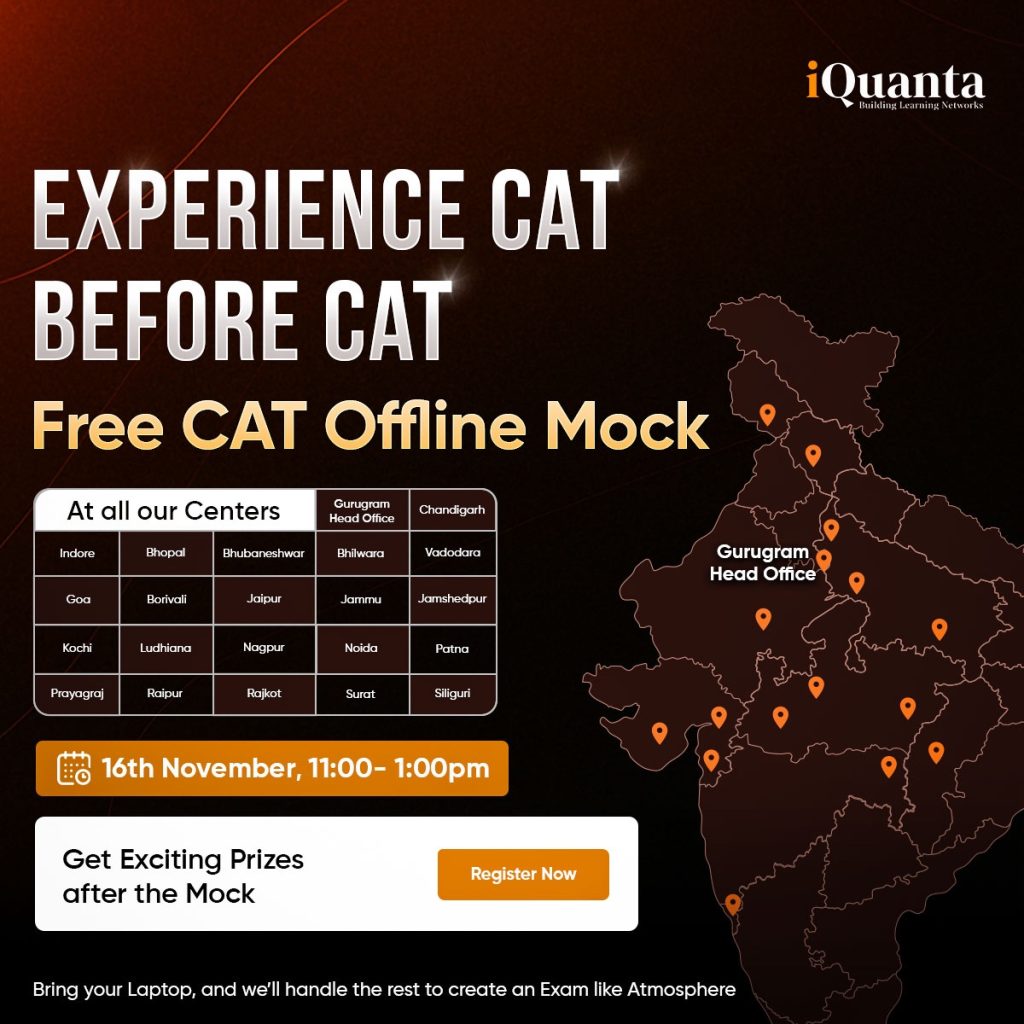 To give the students real experithene CAT exam iQuanta is organising a free all India offiline mock test. The mock will be conducted on November 18, 2025 at iQuanta offline centres. This will help you get the real feel of the exam.
