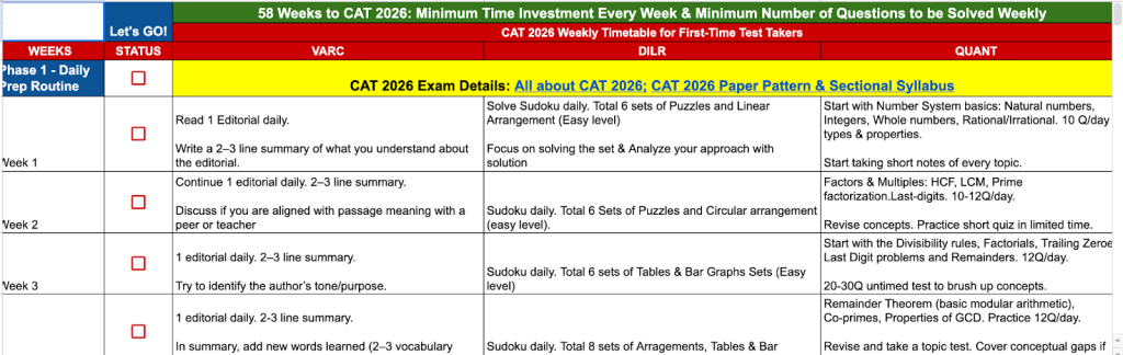 You need a detailed time table and study routine to follow religiously for CAT 2026. This will ensure that you strategically revise all topics and you don’t miss out any topic. For this iQuanta mentors and faculty have made a time table that will help you secure a 99+ percentile in CAT 2026.
