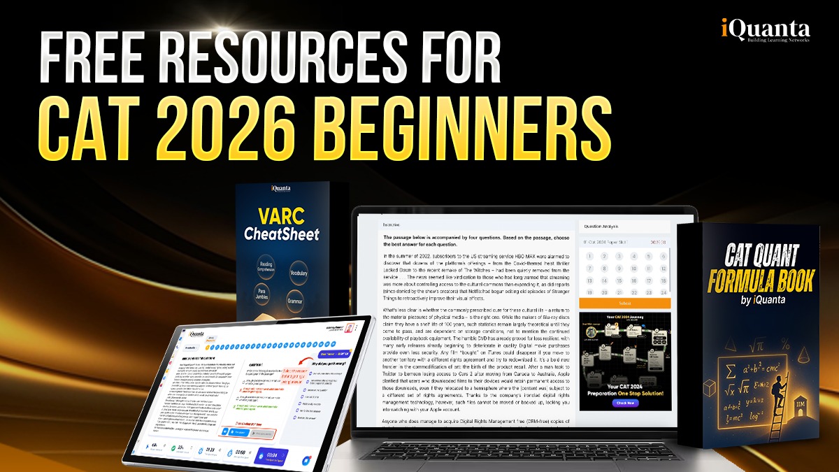 Beginners often search for free CAT study materials to practice more. They often wonder where to begin and how to prepare without overspending. The good news is that there are plenty of free resources for beginners. It will help you learn, revise, and practice endlessly. Various platforms offer free CAT study material. iQuanta is one of the leading CAT 2026 online coaching institutes offering free resources. Every year, 3-4 questions are directly asked in CAT from their lessons. They offer conceptual clarity, free lessons, and personalised guidance. Read on to know more about the free resources for CAT 2026 Beginners and how to use them.