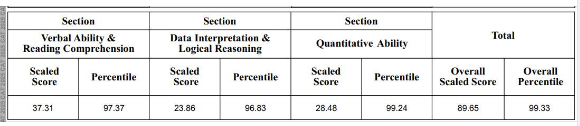 CAT Topper Kushagra Barai scored an overall 99.33 percentile where 97.37 percentile in Verbal Ability & Reading Comprehension, 96.83 percentile in Data Interpretation & Logical Reasoning and 99.24 percentile in Quantitative Ability. The detailed result of a CAT topper is mentioned below.