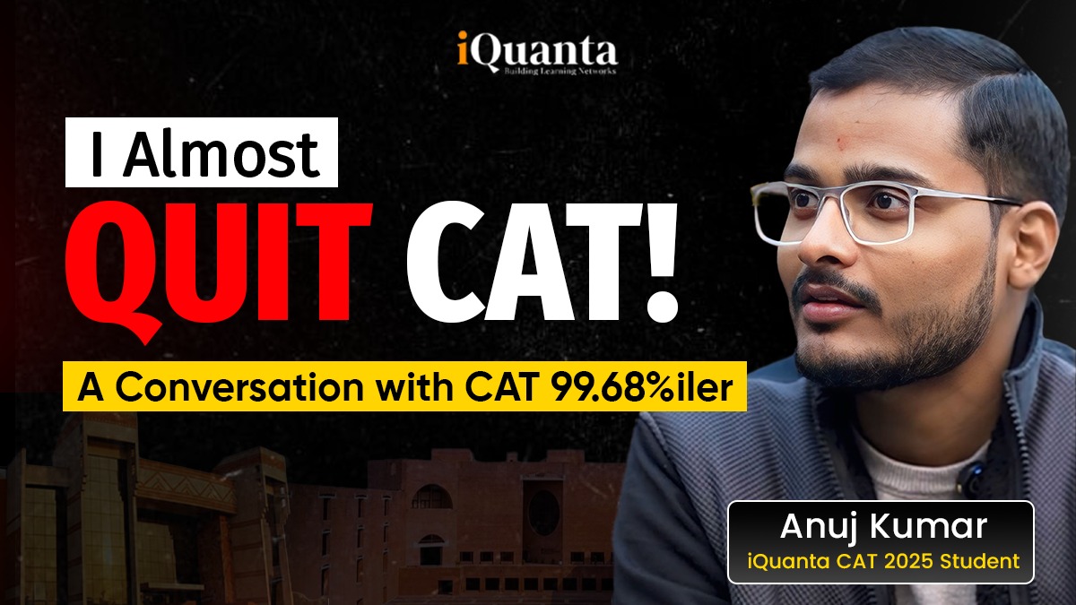 In a recent discussion with an iQuanta topper, Anuj Kumar, who scored 99.68 percentile in the CAT 2025 exam, we sat down to discuss the ups and downs during his journey. Mr. Praneet Jain, the associate director of CX Strategy and Flipkart hosted the iQuanta’s CAT Toppers Meet 2026 held on February 21, 2026. During this event, Anuj Kumar shared his CAT section-wise scores which are 99.68 percentile in CAT overall and a 99.98 in QA. The outcome of his hard work and dedicated preparation strategy is visible from his scores.