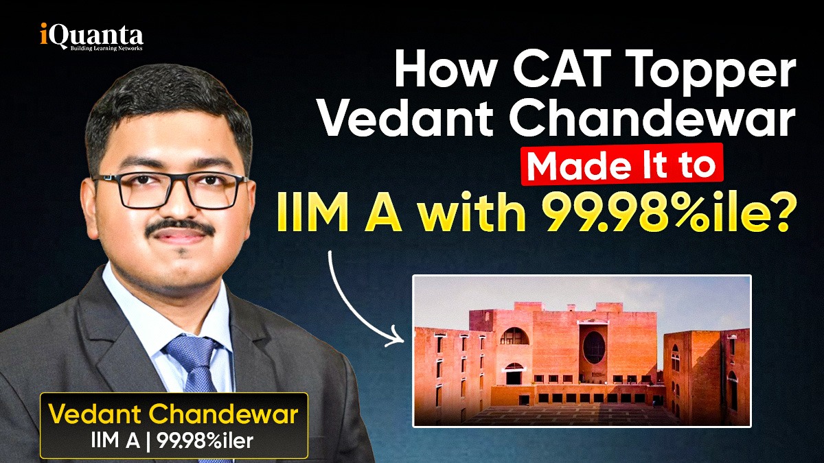 IIM Ahmedabad is one of the top management institutes in the country. This institute never stop inspiring management aspirants by continuously standing at 1st position by National Institute Ranking Framework and the highest placement offered across various domains like Consulting, Finance, followed by FMCG, Strategy, Marketing, Operations and more. Getting admission in these top institutes among competing with the lakh of aspirants is the true combination of dedication, consistency, hardwork and self-belief. This blog covers the inspiring story of an iQuanta’s CAT topper – Vedant Chandewar who scored an inspiring percentile 99.98 with securing an amazing seat at India’s top management institute i.e, IIM Ahmedabad. We will be covering how his daily routine helped him getting such amazing percentile, what are the major challenges he faced during the CAT preparation journey and more. So, let’s discuss his motivational journey in-depth.