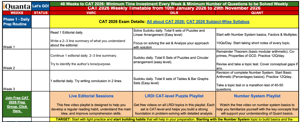 Click here and join the Whatsapp group to get the detailed timetable pdf for CAT 2026