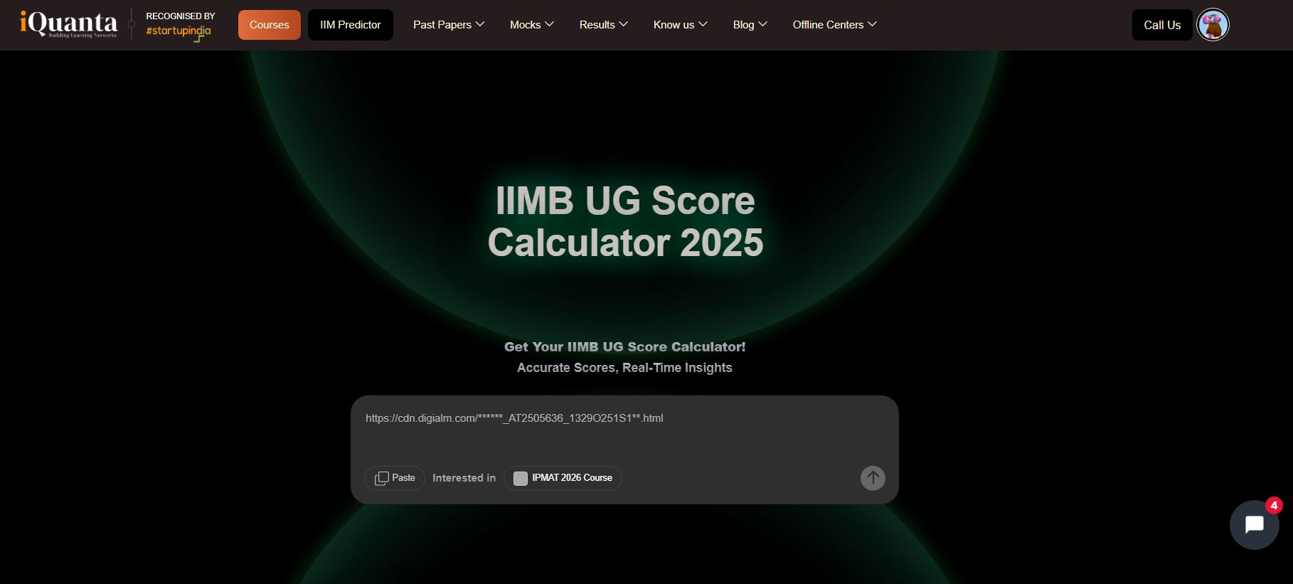 - Visit the iQuanta’s IIMB UG Score Calculator page.