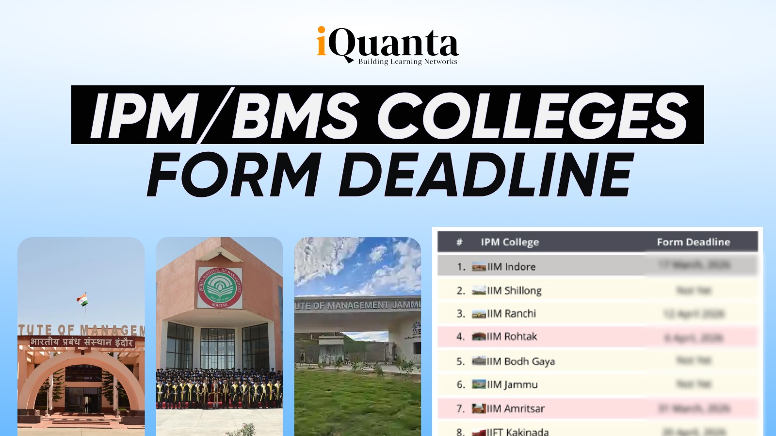 The application deadline for IPM colleges is active. But, the IPM application form last date for some colleges, namely, IIM Indore, IIM Amritsar, NICMAR Pune, TAPMI, Christ University and IIM Sirmaur have already passed. Other IPM/BMS college form deadlines remain open until April to May 2026. Upcoming IPM college form deadlines are open for IIM Ranchi, IIM Rohtak, IIM Kozhikode and IIFT Kakinada in April 2026.