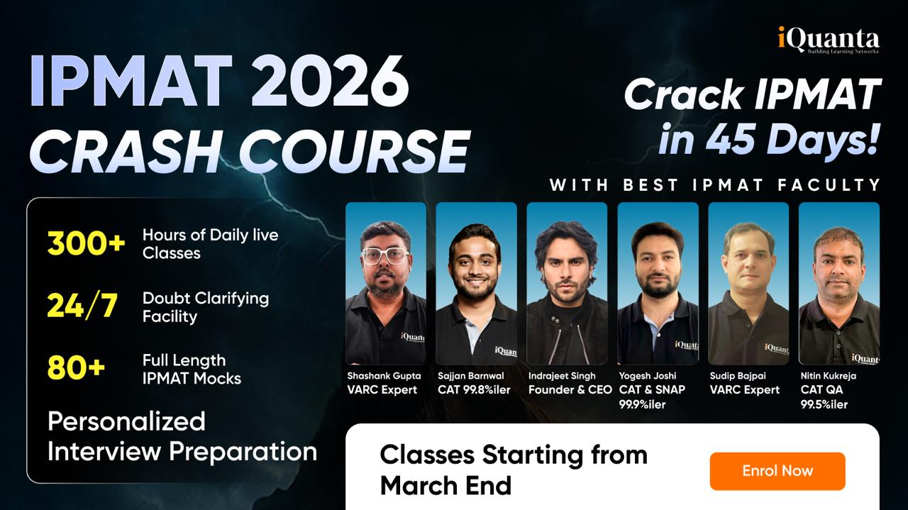 IPMAT Crash Course is extensive for the ideal preparation of exam especially if 2-3 months left with curated syllabus. With this, iQuanta has launched it’s IPMAT Crash Course with live classes will start from March end and the validity of the course will remain till July 2026 for students. Getting access to the crash course will cover extensive syllabus related to IPMAT Indore, IPMAT Rohtak, JIPMAT exam along with 150+ questions with solutions of each topic for practice, 80 full-length mocks as per the latest IPMAT difficulty level, 24*7 whatsapp based doubt solving support and more. This blog covers the detailed information about iQuanta’s IPMAT Crash Course. Let’s discuss it in a detailed manner for better understanding.