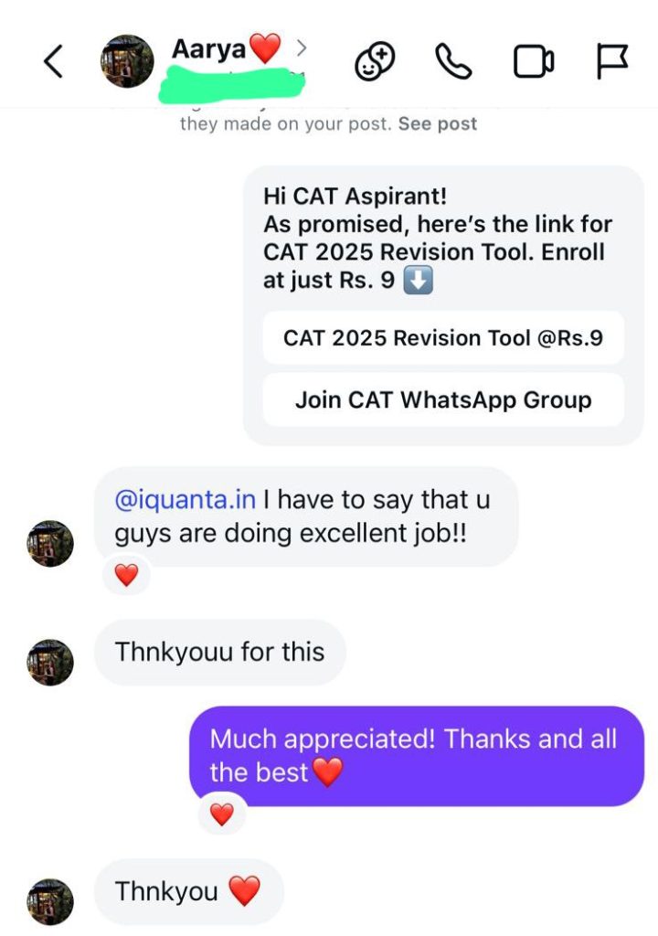 By completing this structured plan, you’ll experience a strong sense of completion, confidence, and motivation before the exam. This is a gift for every CAT aspirant. We have also received amazing feedback from the students, within hours of launching the Revision tool.