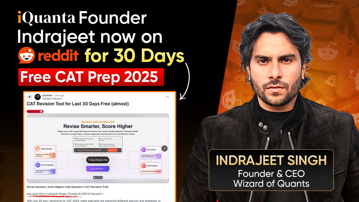 iQuanta Founder, Indrajeet Singh who is also popularly known as the “Wizard of Quant” among the CAT aspirants is now on the Reddit community r/CATiim. To make your last-mile CAT preparation simpler and more effective, Indrajeet sir is introducing India’s First CAT Revision Tool, where you’ll find everything you need to focus on during the final 30 days before the exam.