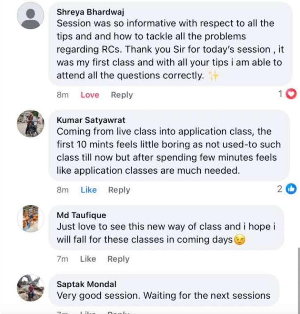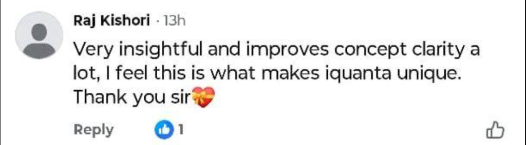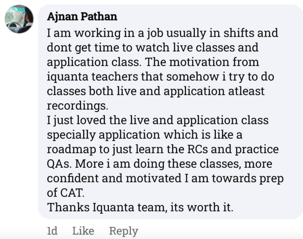 One of the most unique USPs of iQuanta is the dual pedagogy teaching that has live+application classes. This is because we believe that simply delivering lectures by the faculty is not enough. To get a 99+ percentile in CAT one should also learn to apply the learn concepts of live classes to CAT level questions that the learning is much more effective. Many CAT toppers have also mentioned in their journeys that iQuanta’s application classes was a game changer for them. So here is the feedback of the students about iQuanta’s application classes.