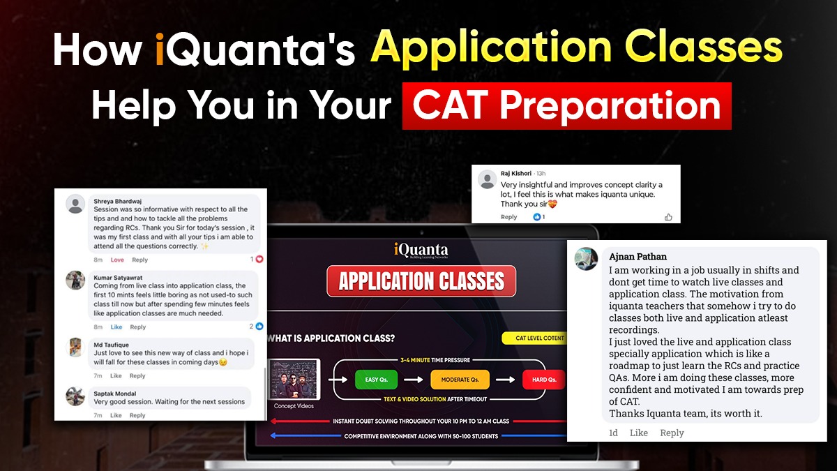 One of the most unique USPs of iQuanta is the dual pedagogy teaching that has live+application classes. This is because we believe that simply delivering lectures by the faculty is not enough. To get a 99+ percentile in CAT one should also learn to apply the learn concepts of live classes to CAT level questions that the learning is much more effective. Many CAT toppers have also mentioned in their journeys that iQuanta’s application classes was a game changer for them. So here is the feedback of the students about iQuanta’s application classes.