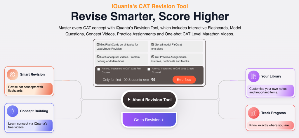 To help out CAT aspirants, iQuanta has come up with a revision tool at just Rs 9. You get daily questions to revise. These questions are based on different topics in CAT and the ones that are really important to practice.