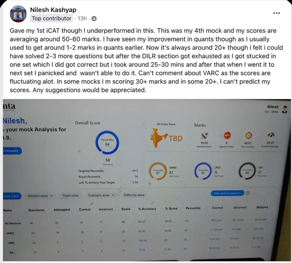 Since just 20 days are left for CAT 2025, you should utilize these few days strategically. Take CAT mock tests everyday and do a detailed mock analysis. Your mock score will show how well are you prepared for the exam. Since time is less you should not waste it in manually analyzing your mocks. iQuanta’s iCAT Mock not only has CAT level mocks but it also provides a detailed analysis of your mock scores. The AI mock analysis clearly helps you find out the weaker areas and topics you need to practice more. This completely eliminates the manual effort of analysing the mocks and you get the analysis within minutes. iQuanta iCAT mocks also has a strategy builder that makes a detailed strategy for you based on your performance in the mock. So if you are weak in one particular topic the strategy builder will make a complete study plan and along with this it will give you various questions to practice on that particular topic. This way you can strengthen your weak areas.