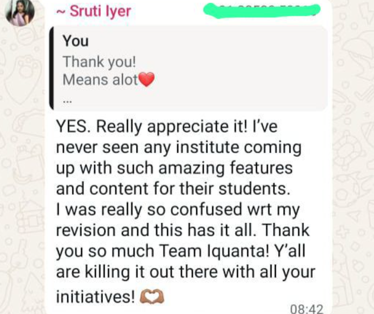 Join iQuanta’s student community for free. Get 24*7 free doubt-solving facility, free informative CAT exam resources, a free online session, etc. Prepare strategically with our experts through the diversified student network.