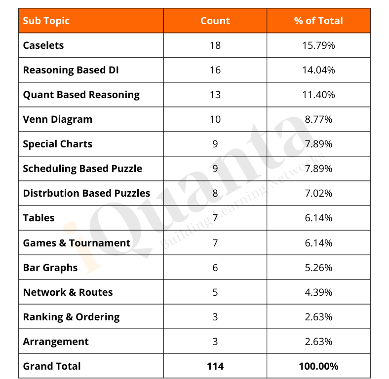 Starting your CAT preparation for the LRDI section requires a well-balanced study plan. You cannot start preparing from any random topic. Initially, you must dive deep into the latest and official CAT DILR syllabus. In the next stage, you must obtain a proper understanding of the DILR exam pattern, marking scheme, most important CAT LRDI topics and much more. Let us first brief you about the DILR topics that will constitute the maximum portion in the actual CAT question paper.