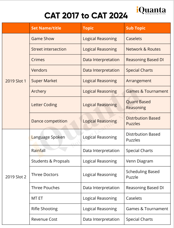 | CAT 2017-CAT 2024 DILR Topic-Wise Set Analysis | ||