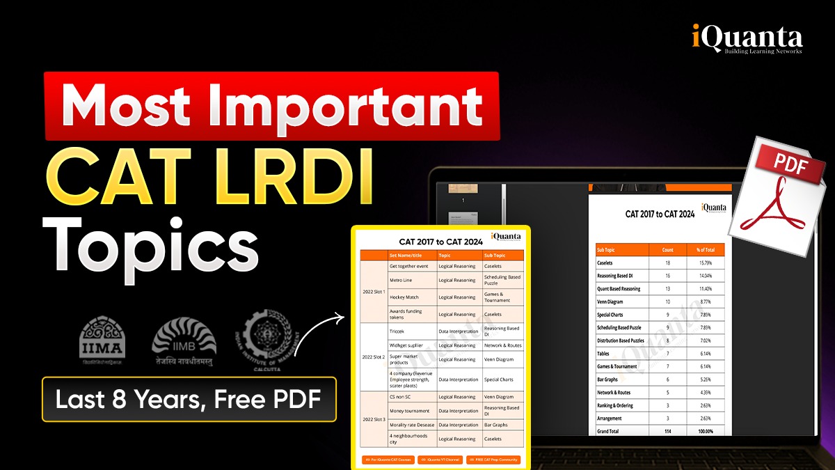 In this comprehensive guide, we will share a detailed PDF about the most important CAT LRDI topics for the Common Admission Test 2026. If you start your LRDI preparation for the CAT 2026 with this resource, then you’ll easily attempt 10-14 questions in a span of 10-12 minutes (approximately). The average score will range between 33-45 marks for the LRDI section. It will vary for every candidate, depending on the slot and the difficulty level of the DILR section.