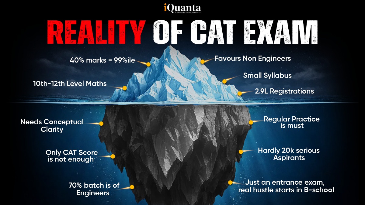 The CAT exam is one of the toughest entrance tests in the country. Lakhs of candidates prepare for this test to get into top B-schools and build a successful career. You may have heard that CAT is easy, has a short syllabus and only requires conceptual clarity. But when you start the CAT preparation, you may find the reality a bit different. CAT is not only about learning theories, formulas or solving questions. It checks your thinking, clarity, and consistency. Many students do not take the CAT exam seriously and later struggle. To help, we have discussed the harsh reality of the CAT exam. This will help you prepare with clarity and avoid common mistakes.