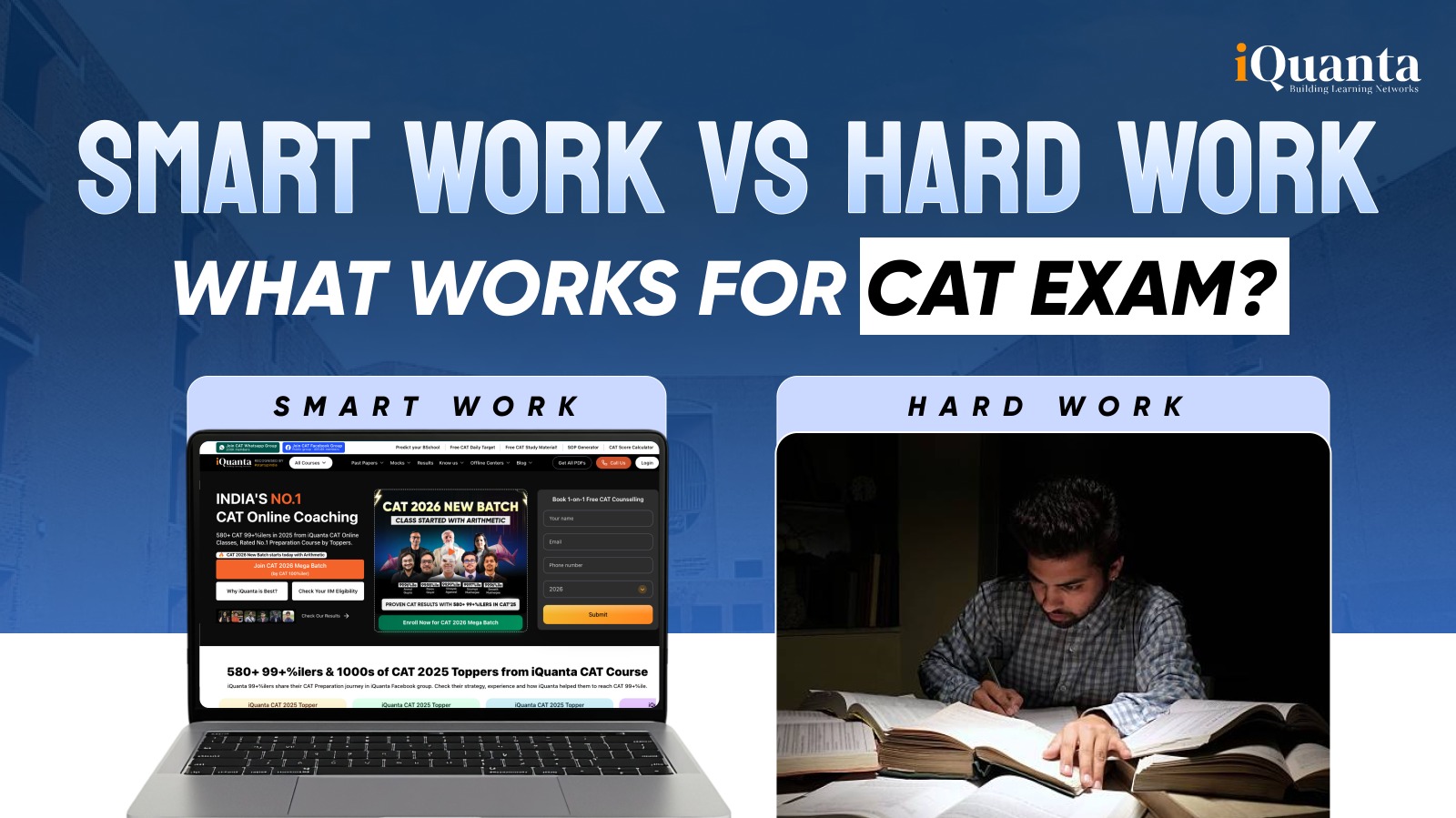 CAT is a competitive and tough exam. Lakhs of students appear for this test every year. There is high-level competition for limited IIM seats. The syllabus is not lengthy. But the competition makes it more challenging. That’s why your strategy makes the difference. Continue reading to know the comparison of Smart Work vs Hard Work and what works best for the CAT exam.