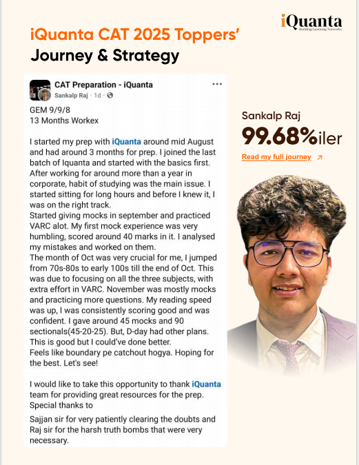CAT Topper 2025 – Sankalp Raj (99.68%iler); iQuanta Student