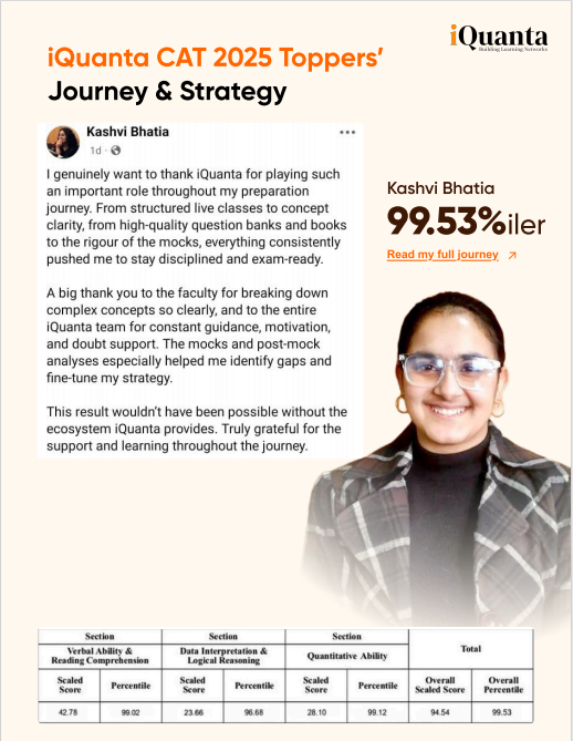 CAT Topper 2025 – Kashvi Bhatia (99.53%iler); iQuanta Student