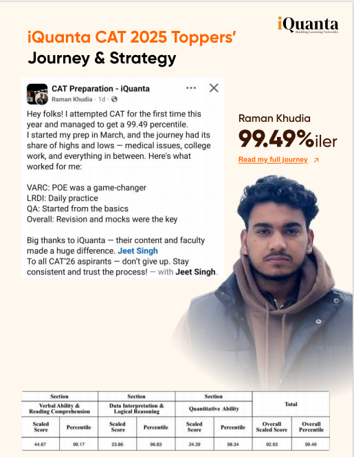 CAT Topper 2025 – Raman Khudia (99.49%iler); iQuanta Student