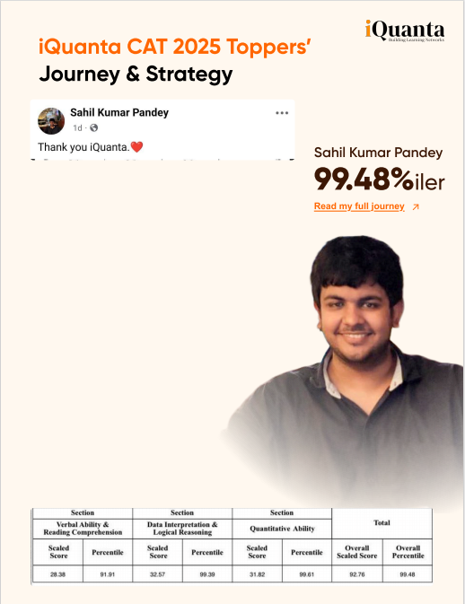 CAT Topper 2025 – Sahil Kumar Pandey (99.48%iler); iQuanta Student