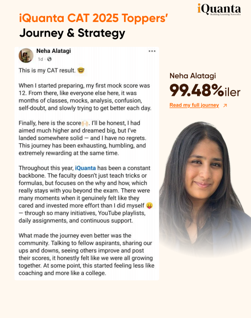 CAT Topper 2025 – Neha Alatagi (99.48%iler); iQuanta Student