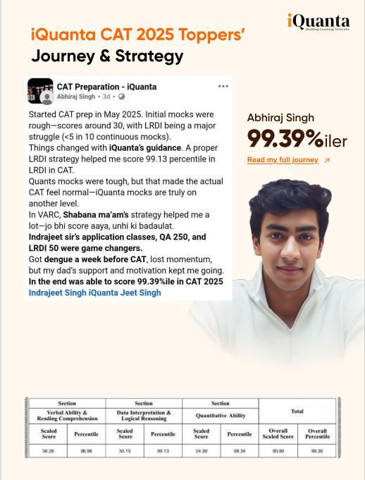 CAT Topper 2025 – Abhiraj Singh (99.39%iler); iQuanta Student