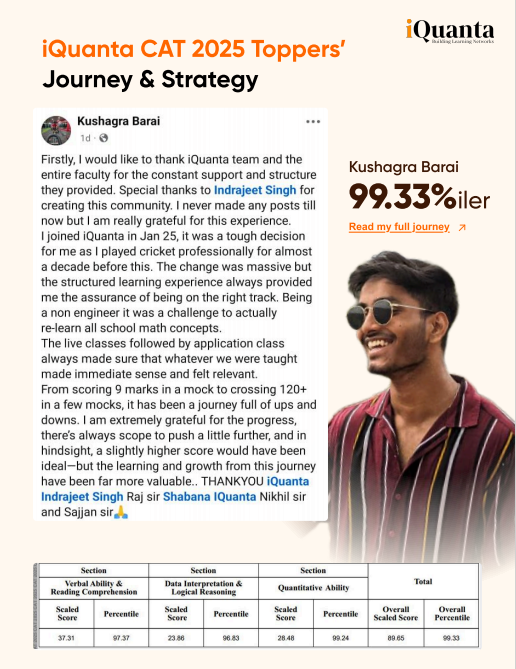 CAT Topper 2025 – Kushagra Barai (99.33%iler); iQuanta Student