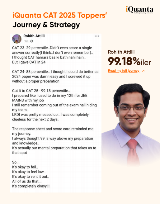 CAT Topper 2025 – Rohith Attilli (99.18%iler); iQuanta Student