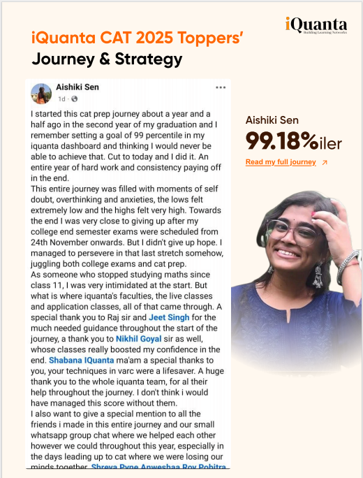 CAT Topper 2025 – Aishiki Sen (99.18%iler); iQuanta Student