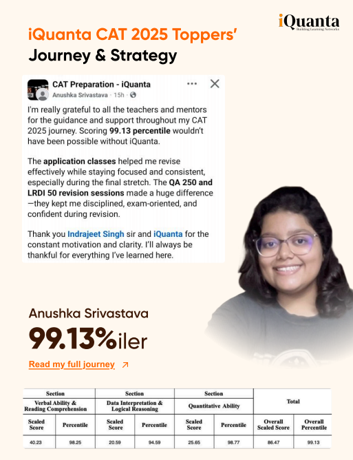 CAT Topper 2025 – Anushka Srivastava (99.13%iler); iQuanta Student