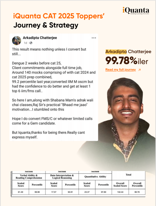 CAT Topper 2025 – Arkadipta Chatterjee (99.78%iler); iQuanta Student