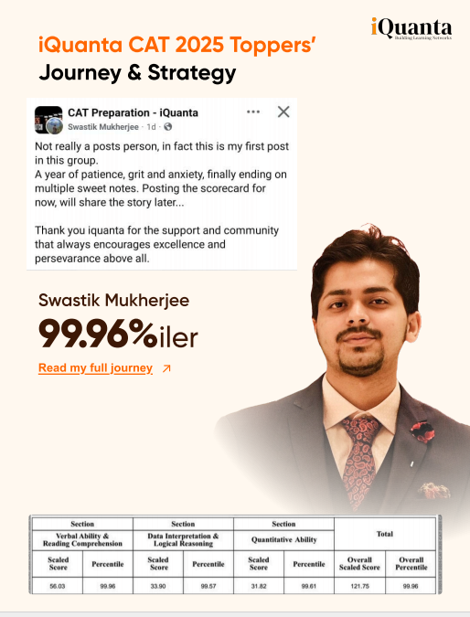 CAT Topper 2025 – Swastik Mukherjee (99.96%iler); iQuanta Student