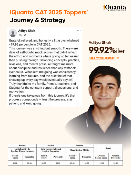 CAT Topper 2025: Aditya Shah (99.92%iler); iQuanta Student