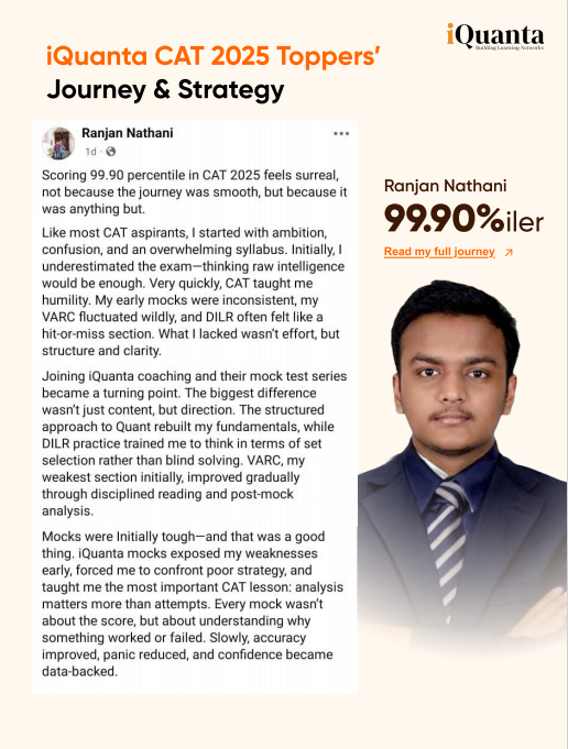 CAT Topper 2025: Ranjan Nathani (99.90%iler); iQuanta Student
