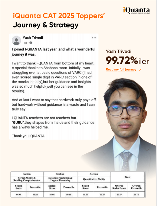 CAT Topper 2025 – Yash Trivedi (99.72%iler); iQuanta Student